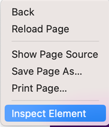 - Right-click anywhere on a SugarClub page and select the option for "Inspect Element"