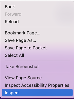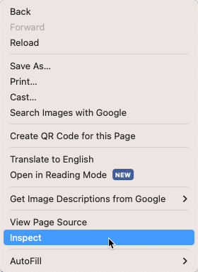 - Right-click anywhere on a SugarClub page and select the option for "Inspect"