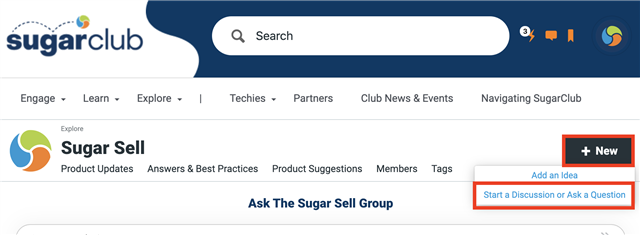 To share your tips and tricks, simply go to any of the Explore groups, such as Sugar Sell or Sugar Market, and click the "+ New" button to "Start a Discussion or Ask a Question."