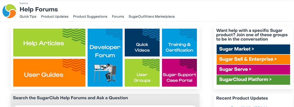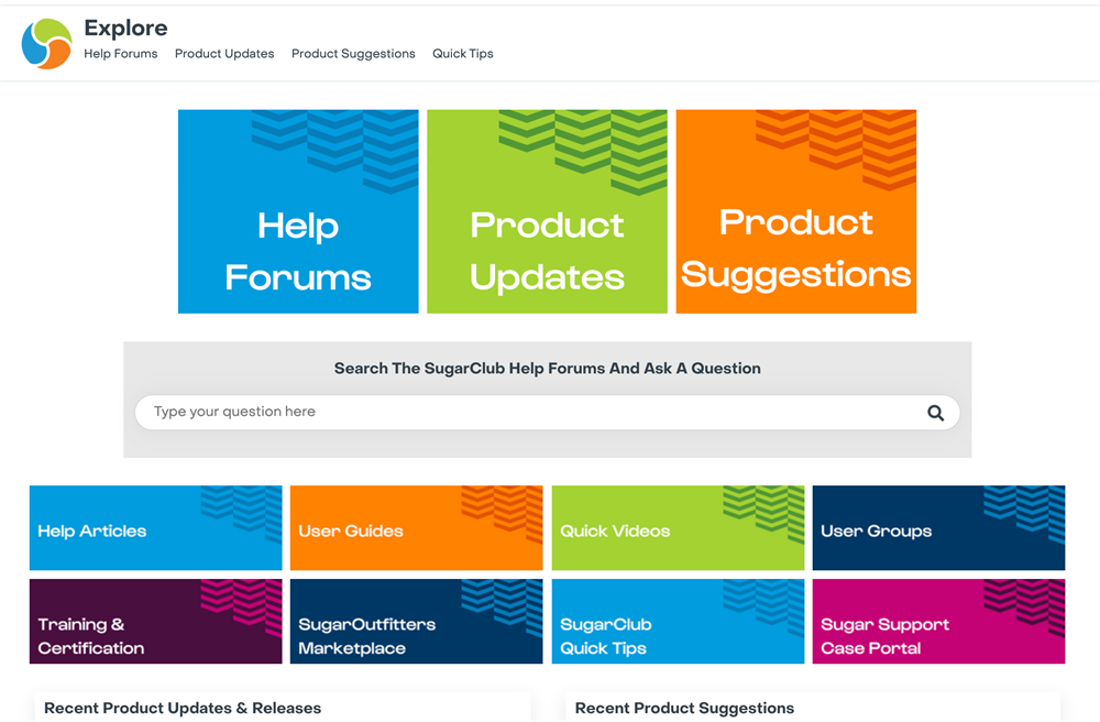 Let's start with some background if you're not familiar with this group. The Explore group is your hub to get all types of useful information about Sugar products - you'll find everything you need at your fingertips. If you have questions about using Sugar, finding best practices about administering your platform, want to help your peers along their journey, want to stay up-to-date on new releases & updates, or share some suggestions for how to improve Sugar, visit the revamped Explore group.
