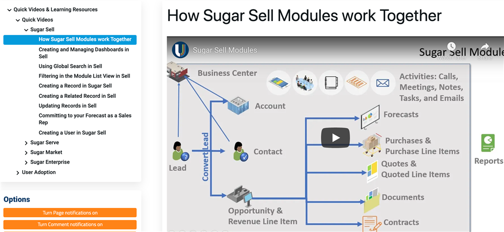We're working hard to expand the newly-added Quick Videos & Learning Resources library. Here, you'll find a library of quick videos to demonstrate common actions in your Sugar products, as well as resources for increasing user adoption, such as our five-part Optimizing User Adoption Series. Check back often as we'll frequently be adding more content!