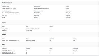Amazon Fraud Detector service provides you with an easy tool to test and get predictions from your model without building or triggering their API. This can be helpful for making sure your model is really performing well.