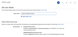 This is how you need to setup AWS fraud detection leveraging the IAM setup from earlier: