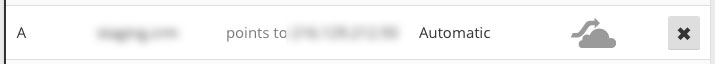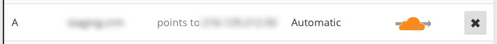 Our next step was to enable CloudFlare for the Sugar On-Site instance. In our case this was very easy because Sugar is hosted on a sub-domain of a domain that is already set up in CloudFlare. We just have to turn CloudFlare on in the DNS section of the CloudFlare admin page for that domain.