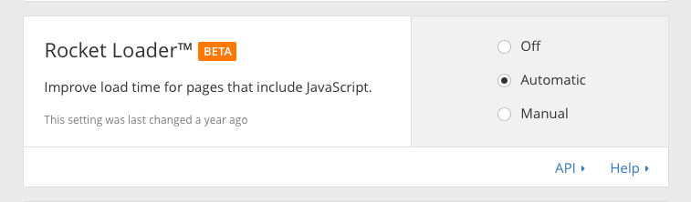 Farther down the Speed page are the settings for the Rocket Loader feature. They should look like this: