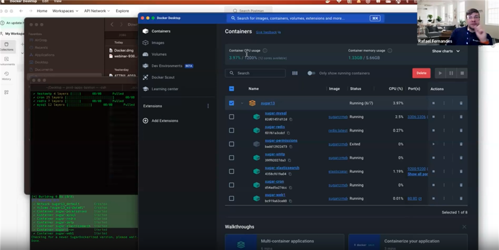 SugarDockerized is a great resource to help developers get a working local development environment of Sugar up and running quickly and easily. Rafael Fernandes gave a live demonstration of building a local development environment from scratch - from installing Docker Desktop to downloading and starting the containers, to installing and testing Sugar running on his local machine.