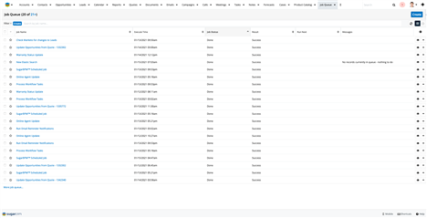 One of the things I can't believe we still don't have 'Out of the box' access to in Sugar is the job_queue table. The job_queue table is where sugar stores the queue of scheduled and submitted jobs that the cron job will run. On my system there are sometimes hundreds of jobs queued up in here and I needed a way for Admins to monitor it and a way to find failed jobs easily. Our version of this module is quite a bit more complex as we run 3 crons at the same time to run different types of scheduled jobs so we added a priority field and a 'Run Next' field and a field to assign a job to a particular cron.