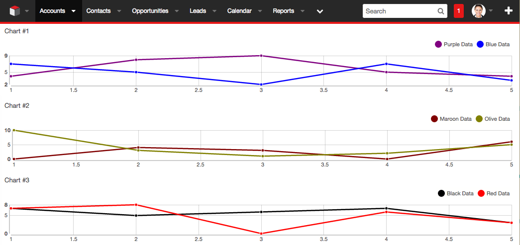 The examples here are very simple. There are many chart types to choose from and many options for each chart type. Hopefully using these tutorials, the resources mentioned above, and some trial and error, you will then be able to build custom charts in your Sugar customizations.