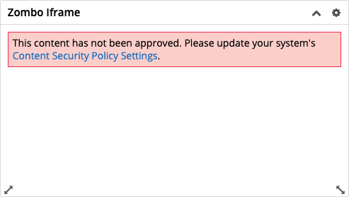 What if I wanted to add an iframe to a dashlet that displays content from https://zombo.com?The first part is the same as before - create the new "Web Page" dashlet with https://zombo.com/ as the URL. Previously, this would be all that was needed to display the content of the external site in our Sugar Dashboard. Now that we are enforcing Content Security Policies, your dashlet is going to appear to be broken and display a bold error message.