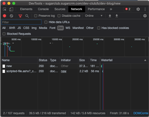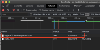 - Ensure that no filters are set OR (this is likely better) select the "Doc" filter. What we are looking for is the network information about the current document - the entire page