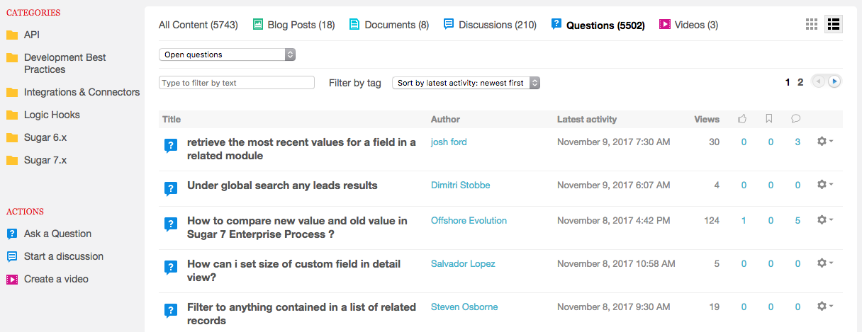 If you continue scrolling down the home page, you’ll see Recent Activity with all of the latest community content as well as a form where you can sign up for Developer News to receive the latest Sugar Developer news, webinars, and surveys straight to your e-mail inbox (I highly recommend signing up if you haven’t already!).