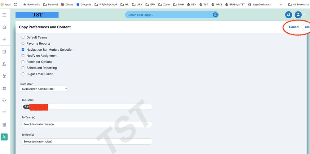 I wanted to copy that list to some other users in my team, using the "Copy Preferences and Content" option on the Users module (click the three dots on Users module in the sidebar menu) but...