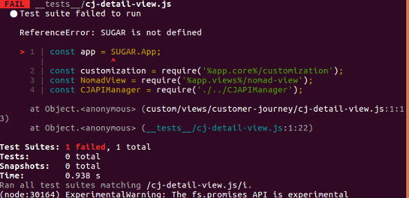 I've a test folder in my app. I ran npm test to run a test file however, It gave me this error