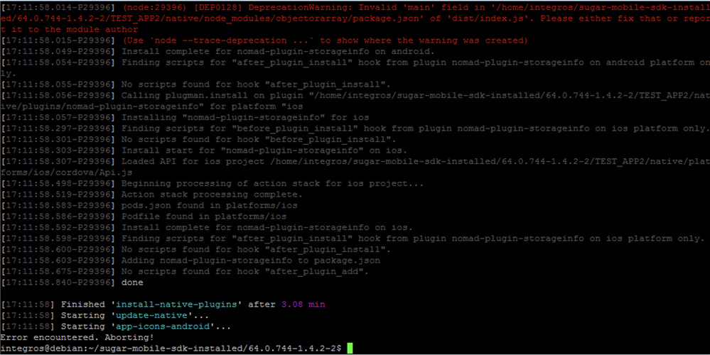 SDK Update 60 -> 63/64: Error encountered. Aborting