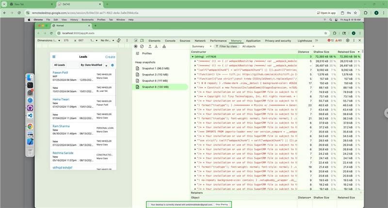 We are experiencing an OutOfMemoryError in the SugarCRM mobile application, which appears to be related to the heap size allocation on certain devices. It is happening on certain events like page refresh, Menu item click after login etc.