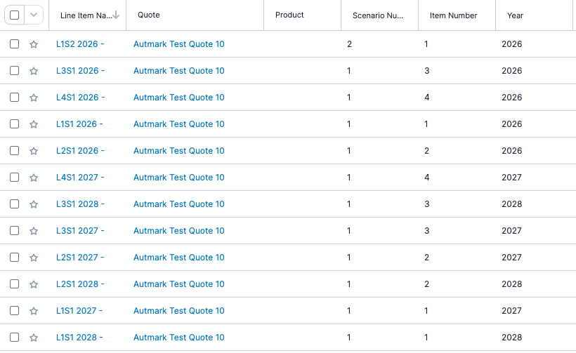 To make this approach work, we needed to specify on the quote what the first year covered by the Line Items would be. This was passed down to the individual Line Items on a calculated field. The pre-rendered table data is saved on the earliest year Line Item record for each table.