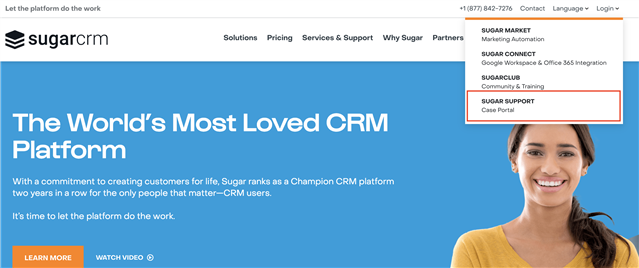 This person must log in to SugarCRM.com by clicking on the Login link in the top right of the page and selecting the Sugar Support (Case Portal) option.