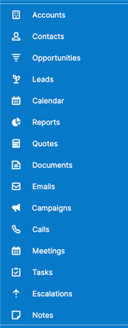 When Sidebar is collapsed, Sugar displays a list of "pinned" modules.