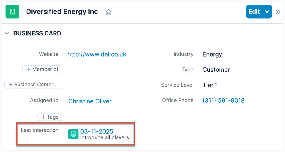 When was the last time we talked to that customer? Tired of digging through records to find that answer? Introducing the Last Interaction field in the Accounts module! It automatically updates with the most recently held call or meeting so you can see at a glance, and report on, the last time you spoke with your accounts! Learn more about Account Management in Sugar's Application Guide.
