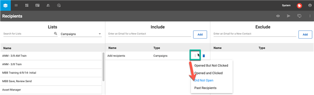 Did you know that in Sugar Market you can easily create include lists based on your previous marketing data? Say you sent an email last week and now you'd like to do a re-send to anyone who did not open. No need to create a new list, just filter your past recipients from the first campaign.