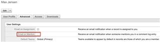 The Email on Mention setting was added over a year ago in Sugar 9.1 but it’s disabled by default so many people might not be taking advantage of it. Turn this setting on in your user profile to receive email notifications when someone mentions you in a comment log entry.