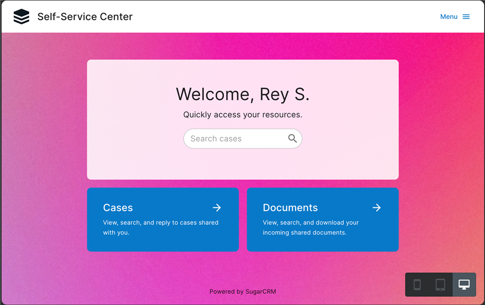 The Sugar Self-Service Center is a new robust self-service portal. Did you know we just rolled out options where an admin may customize their Self-Service Center to suit their business needs? Below you can see the default look of the portal: