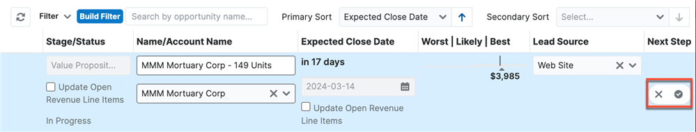 In Sugar 14.0, we've made the Sales Stage and Expected Close date fields editable within the Sales Console! So now, these fields can be quickly updated and their values cascaded down to their revenue line items. It's nice to do all your work in one place without opening lots of tabs!