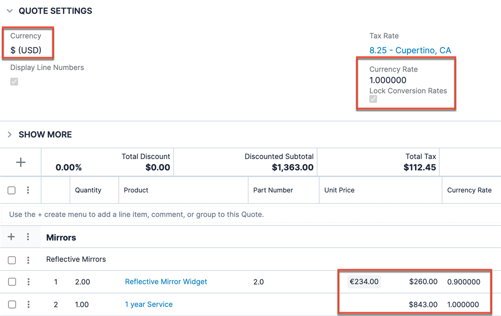 When you are actively working on a quote, you may want the currency conversion rates to remain static to prevent confusion and help ensure a smooth path to closing the deal. As of Sugar 14.1, to prevent currency conversion rates from updating prior to closing the quote, you can use the newly added Lock Conversion Rates field! See the Quotes and Quoted Line Items documentation for more details.