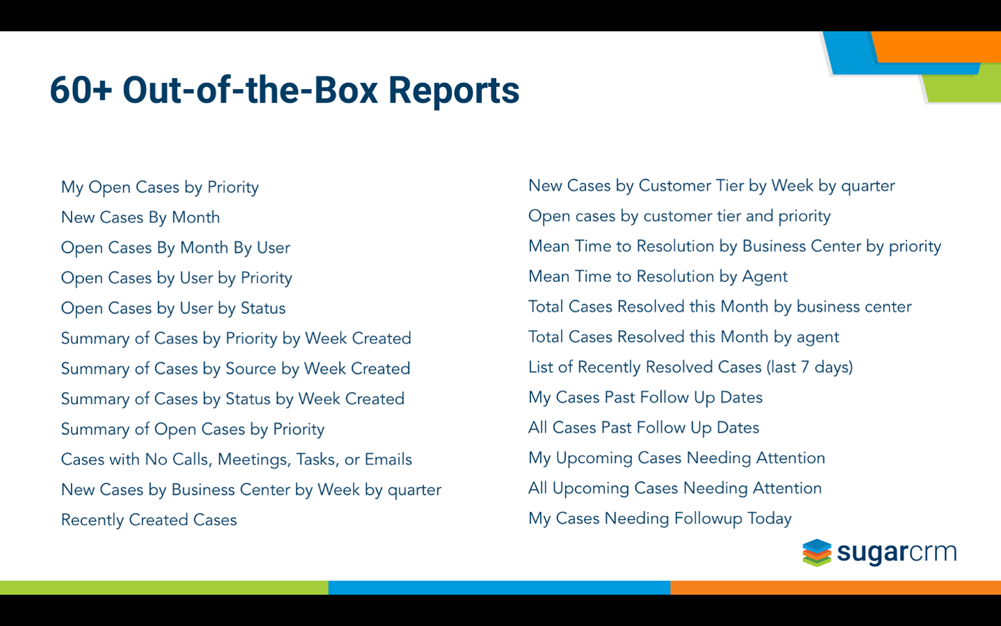 The centerpiece of the new Serve product is a newly designed and re-imagined Service Console; our fresh take on our case management user interface and productivity tools; SugarBPM-powered SLA management, routing and escalations out of the box; and many new reports, dashboards, and data visualizations for both customer support agents and their managers.