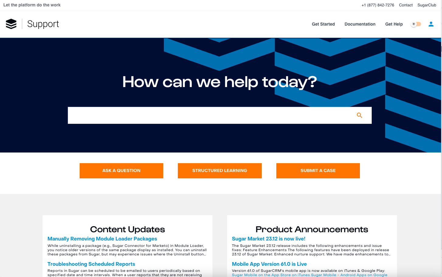 It has been a while since the Support site received any visual updates, but the time has come! With a modernized new user interface and some new navigation elements, we hope the experience of reviewing the documentation will be easier and more familiar, with design and brand similarities across the other SugarCRM websites.