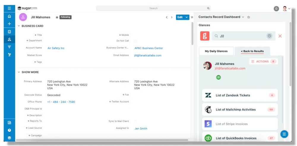 While Glances will work in the Sugar platform regardless of adding the dashlet, you may consider this option if you want to always see its 360-degree view of your data across apps when you’re working on CRM activities. Glances as a dashlet not only puts your holistic data front and center, it also makes your data feel like it lives in Sugar without the hassle of integrating your other applications.