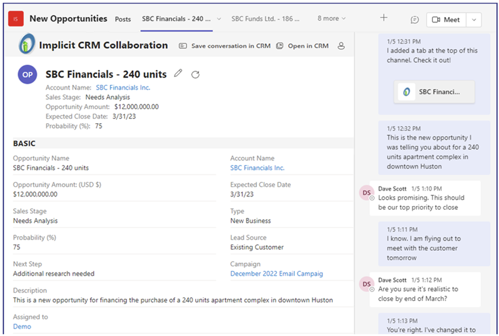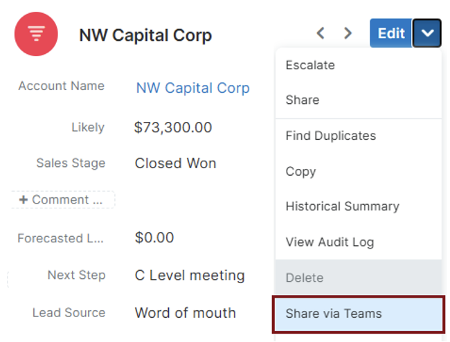 Sharing and collaborating on CRM Records inside Teams