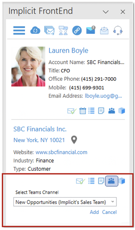 Leveraging the power of Teams and Outlook together Implicit for Teams and Implicit FrontEnd for Outlook are tightly integrated to offer users additional functionality and benefits. If you use Implicit for your Outlook integration, you can share CRM records directly from your inbox side-panel. For example, if you received an important email from a customer and you’d like to discuss it with your team, you can share the email itself and the related CRM record in Teams directly from Outlook. The outlook integration is also used to save transcripts of meetings in SugarCRM because the transcripts are ready only after meetings end. The Outlook add-in continues to track meetings and when the transcripts are ready, it retrieves and attaches them as a note to the meetings’ records in SugarCRM.