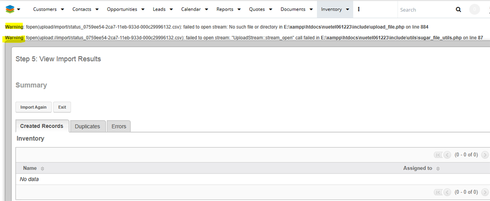 but when i inserted the record via import facility, and my csv file has duplicate record then i got below error.