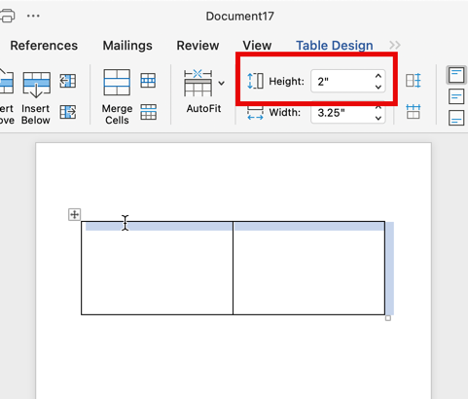 Table Layout and set height (I am using 2 inches)