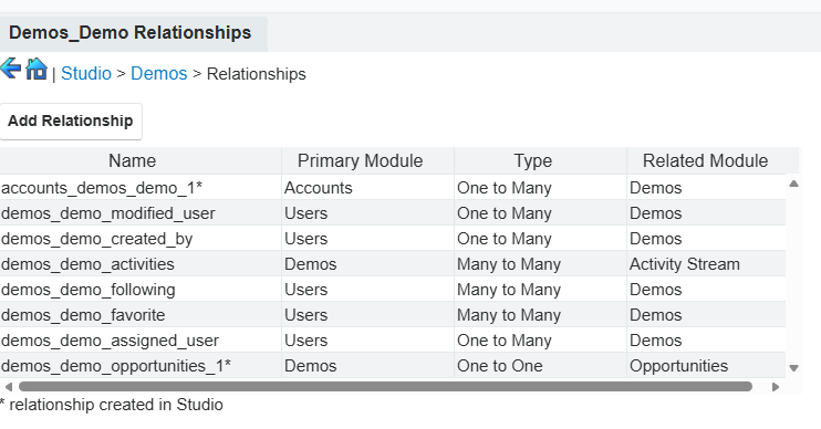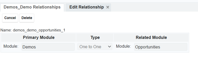 I'm trying to create a BPM process that automatically adds an Opportunity record whenever a Demo record is created with certain criteria.  I created a 1-to-1 relationship in Studio between Demos and Opportunities.  However, when I try to create my BPM action, the Action Type of Add Related Record is greyed out.  When I hover over it, it says there are no related modules.   I can see the Demo-Opportunity relationship I created in Studio.   I can't figure out why the BPM designer isn't recognizing it.  I've deleted the BPM module and started over, but still won't work.