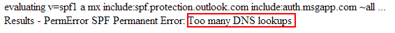 Below is an example of the 'Too many DNS Lookups' error" from the kitterman tooling: