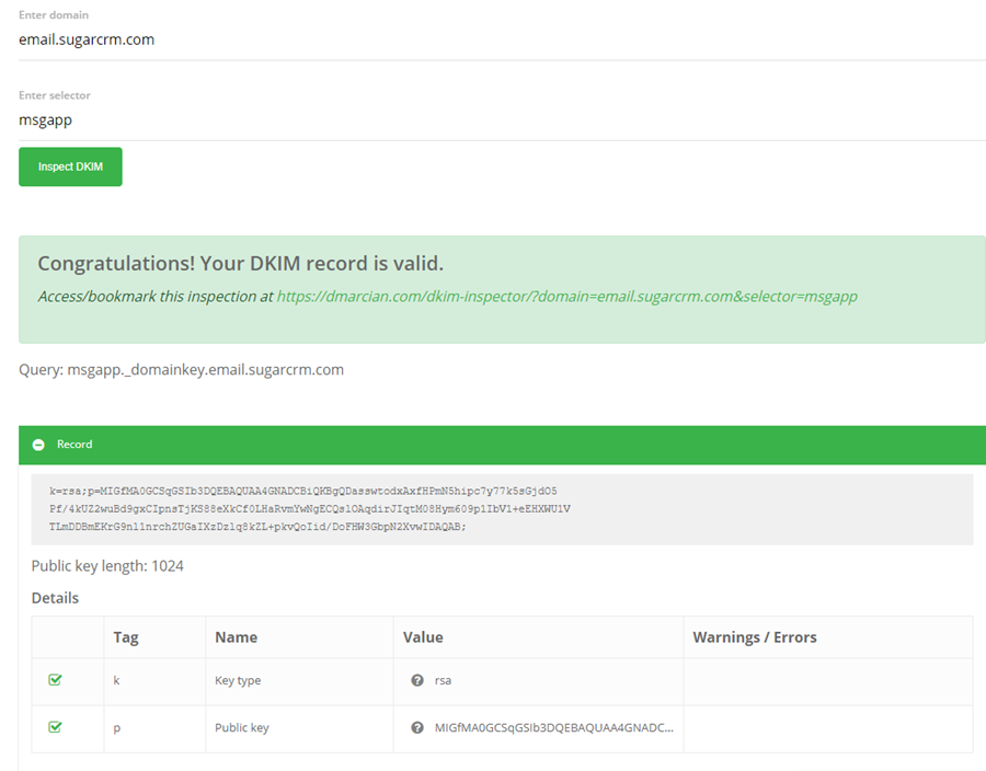 There are a few online tools to validate DKIM records. For the purposes of this article, we will be using Dmarcian.