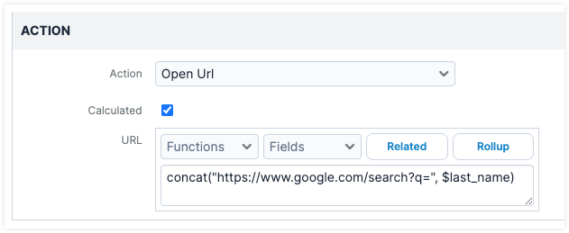 However when creating a button with an action "open url", i can make a calculated field, but not build one as I did before.