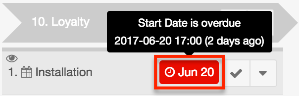 - The due date is directly displayed on each open activity in a journey as a color-coded tag