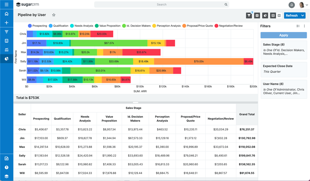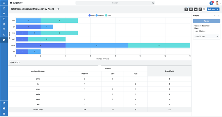 After working with our customers and compiling excellent feedback, the Reports Viewer gets a new user experience in this release. The steps to create a report are the same as in previous versions of Sugar and existing reports do not need to be modified to take advantage of these improvements. Users will see these changes and more on all existing and future reports: