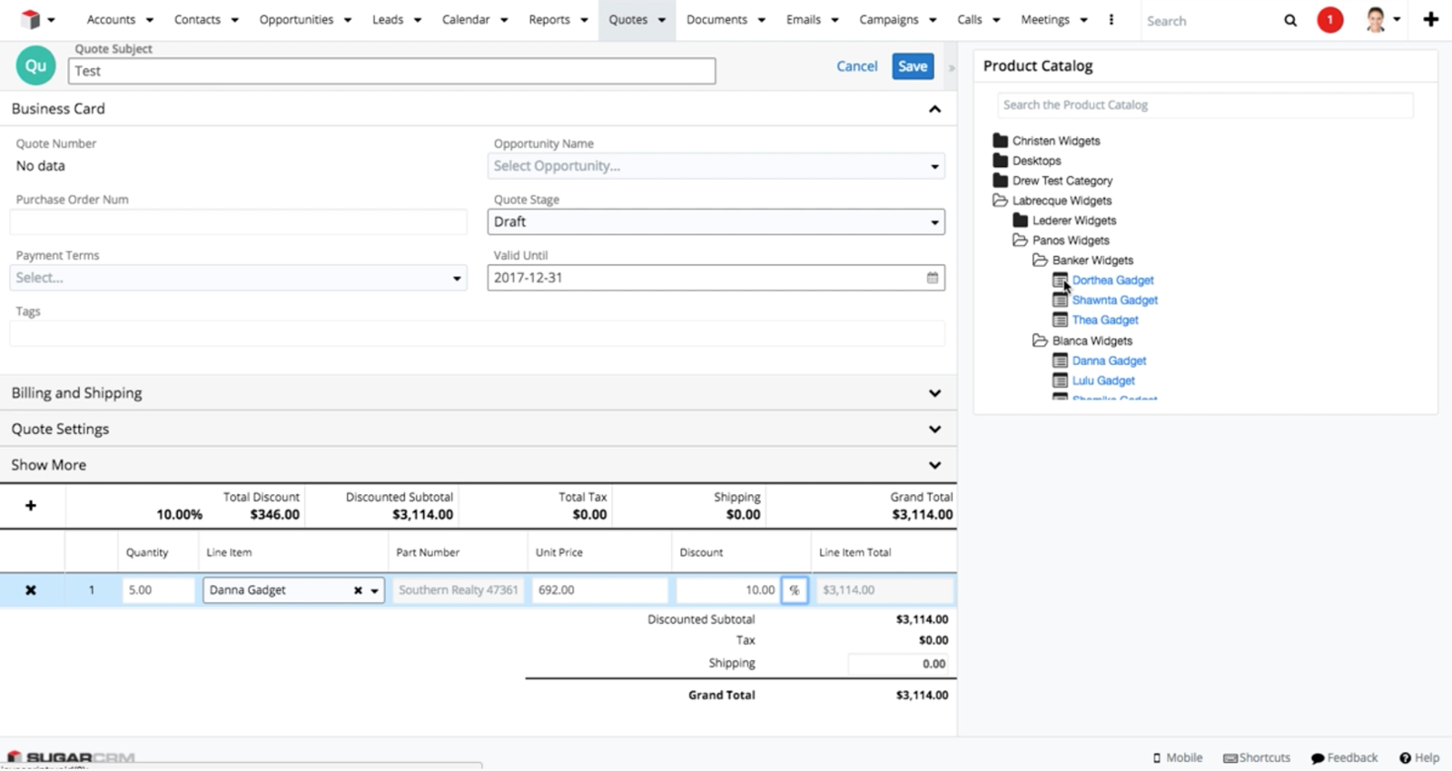 Product Catalog Dashlet
