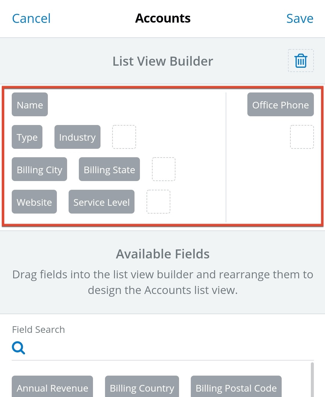 If you're an admin, set your mobile users up for success by making sure your mobile list view layouts in Studio are optimized for this new feature before upgrade. The first eight fields in the Default column will automatically be shown on list view - completely different from how it currently works, where only the first two fields are shown. It's a good idea to take a look at the fields you have there to ensure a reasonable set of data will be shown to users by default. All of the fields in the Available column will also be available for users to put onto their views, so it's a good idea to review those too.