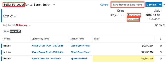 Check out the screenshots and tables below for a description of the updates to the manager and seller worksheets. More details about the Forecasts module can be found in the Forecasts page of the Application Guide.