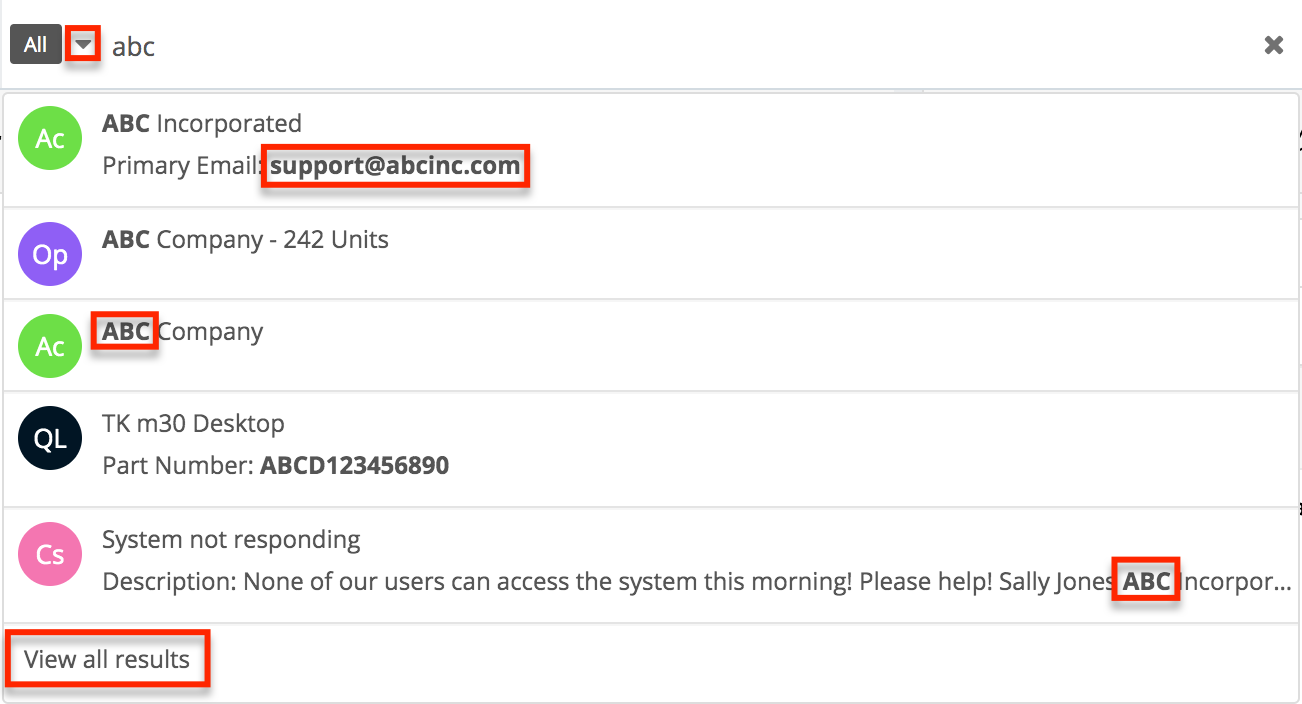 Global Search is the driving force of Sugar’s search functionalities, allowing you to perform searches across the entire database. It uses Full-Text Search to look through nearly all fields and modules, enhancing the search experience along the way. As you begin typing in the search box, results pop up dynamically, displaying matches from a broad spectrum of modules. This feature is particularly useful when you need to access information from various parts of the CRM without knowing the exact location.