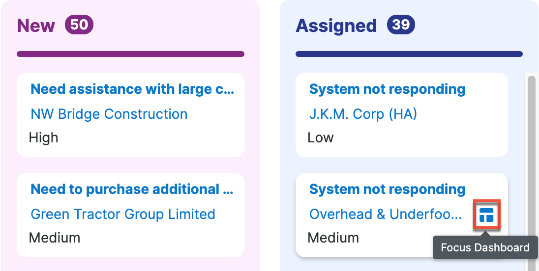 Clicking this Focus icon within a tile activates a Focus Drawer, simultaneously sliding the column to the left-hand side of the screen. This feature keeps all tiles in the column visible as you interact within the Focus Drawer. You can use the provided arrows to navigate between other tiles in the visible column within the Focus Drawer. Closing the Focus Drawer returns the column to its original position in the Tile View.