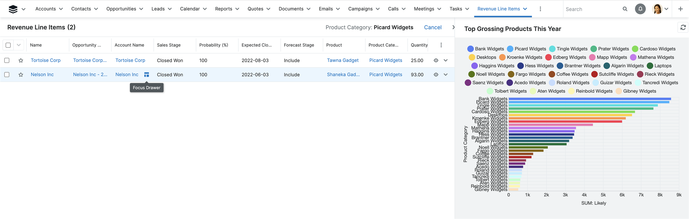 Drill down into report results using Focus DrawersThe ability to use Focus Drawers has been added to reports, allowing users to drill into a report's chart and easily see the details in one view. Previously, clicking on the drill-down results of a report would force the user to navigate away from the report being viewed, slowing down their workflow. Users will now quickly be able to see the report details via a filtered list view result in the focus drawer. ![]() |
