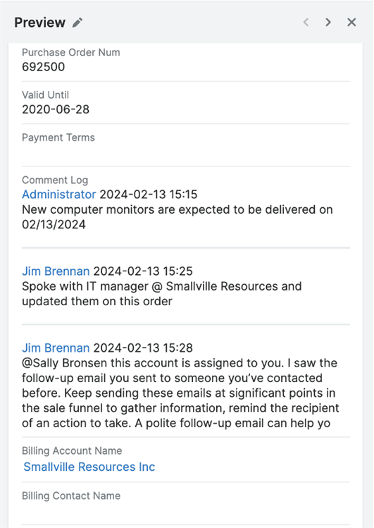 With the expanded availability of the Comment Log in the Quotes Module and all Preview Layouts, users can now enjoy a unified and efficient process for managing quotes and other similar processes. This improvement ensures that tracking and documenting changes is a smooth experience. Adding a new scrollbar to the preview view enhances easier navigation through comments.