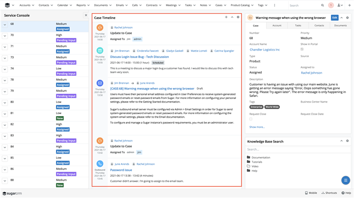 Timeline also lets you reply to and forward emails directly from the dashlet and, in Sugar Serve and Sugar Sell, it has the incredibly popular Focus icons for quick drill-down into activity records.