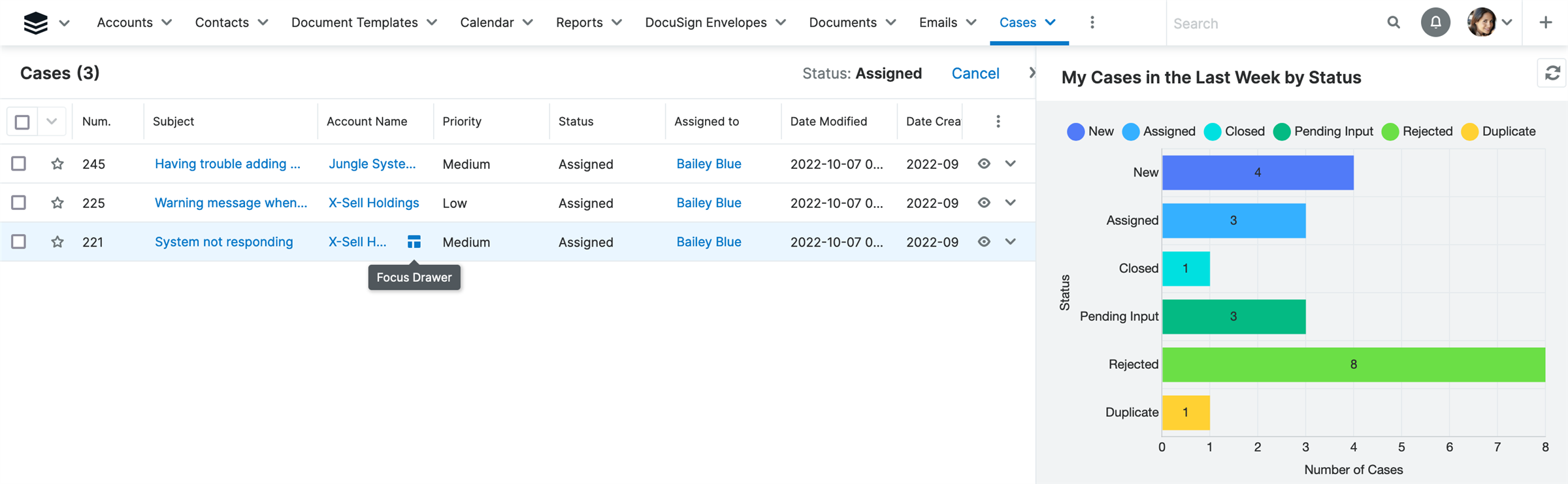 Drill down into report results using Focus DrawersThe ability to use Focus Drawers has been added to reports, allowing users to drill into a report's chart and easily see the details in one view. Previously, clicking on the drill-down results of a report would force the user to navigate away from the report being viewed, slowing down their workflow. Users will now quickly be able to see the report details via a filtered list view result in the focus drawer. ![]() |
